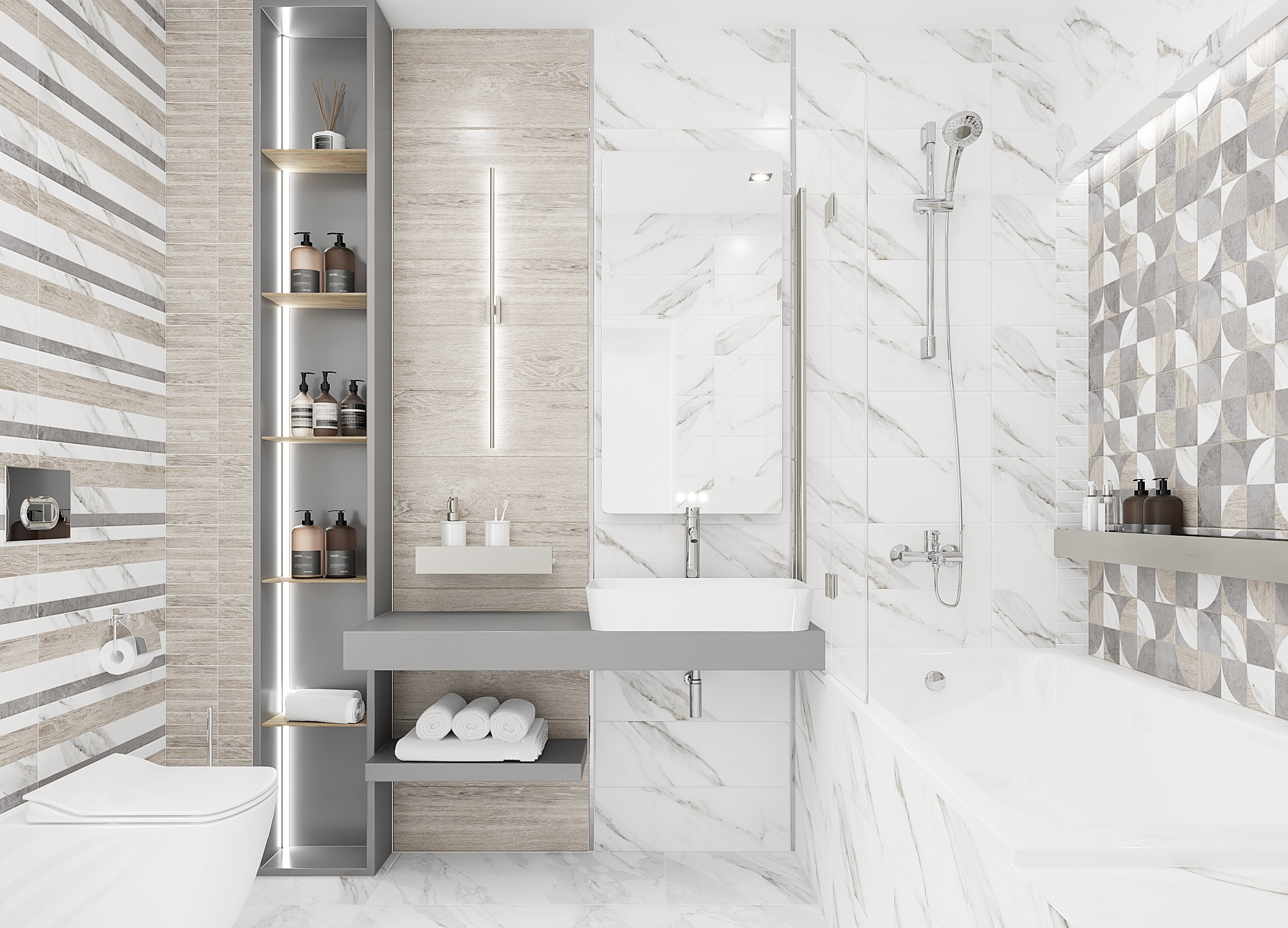Arctic Плитка настенная полоски серый 17-00-06-2487 20х60