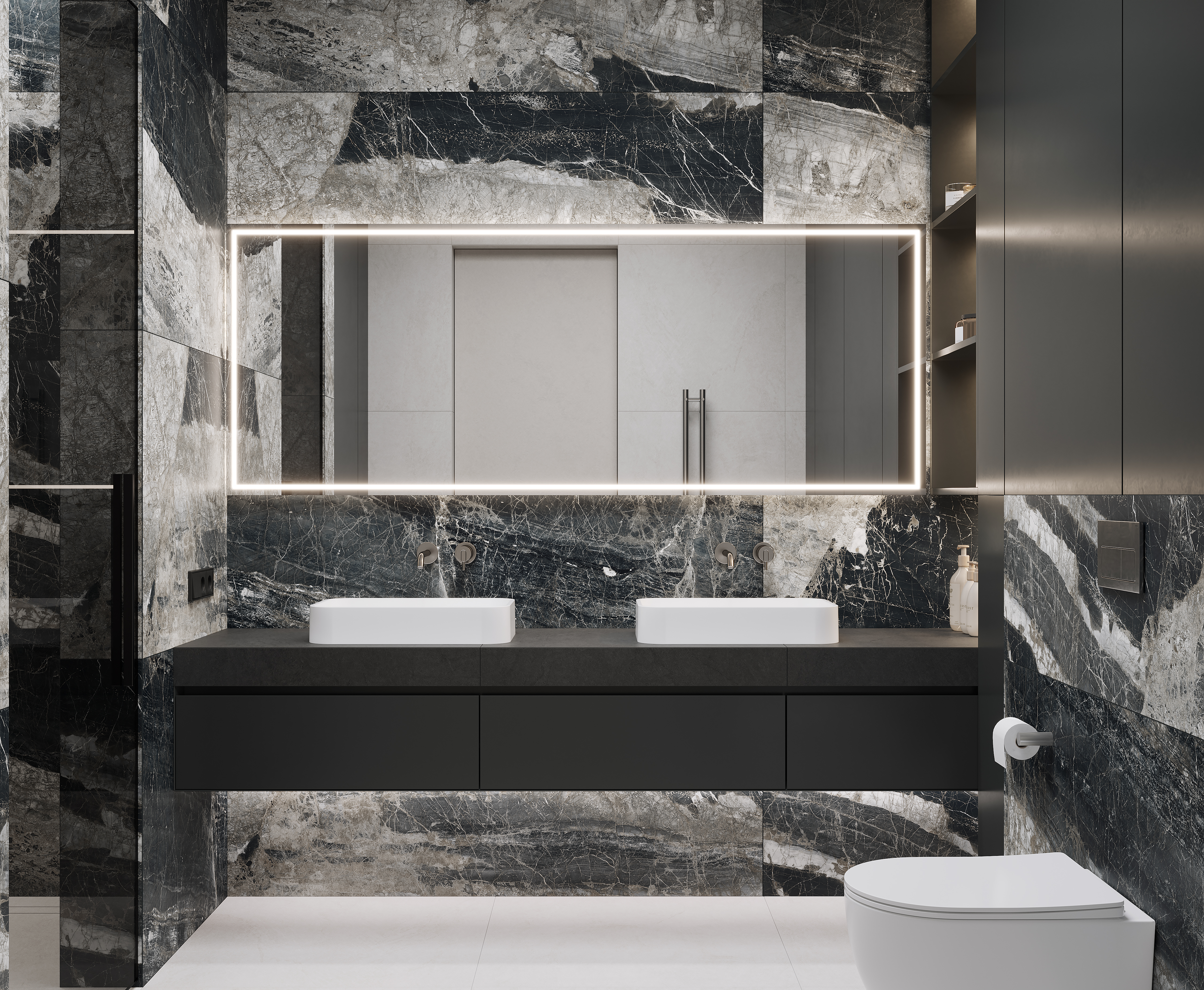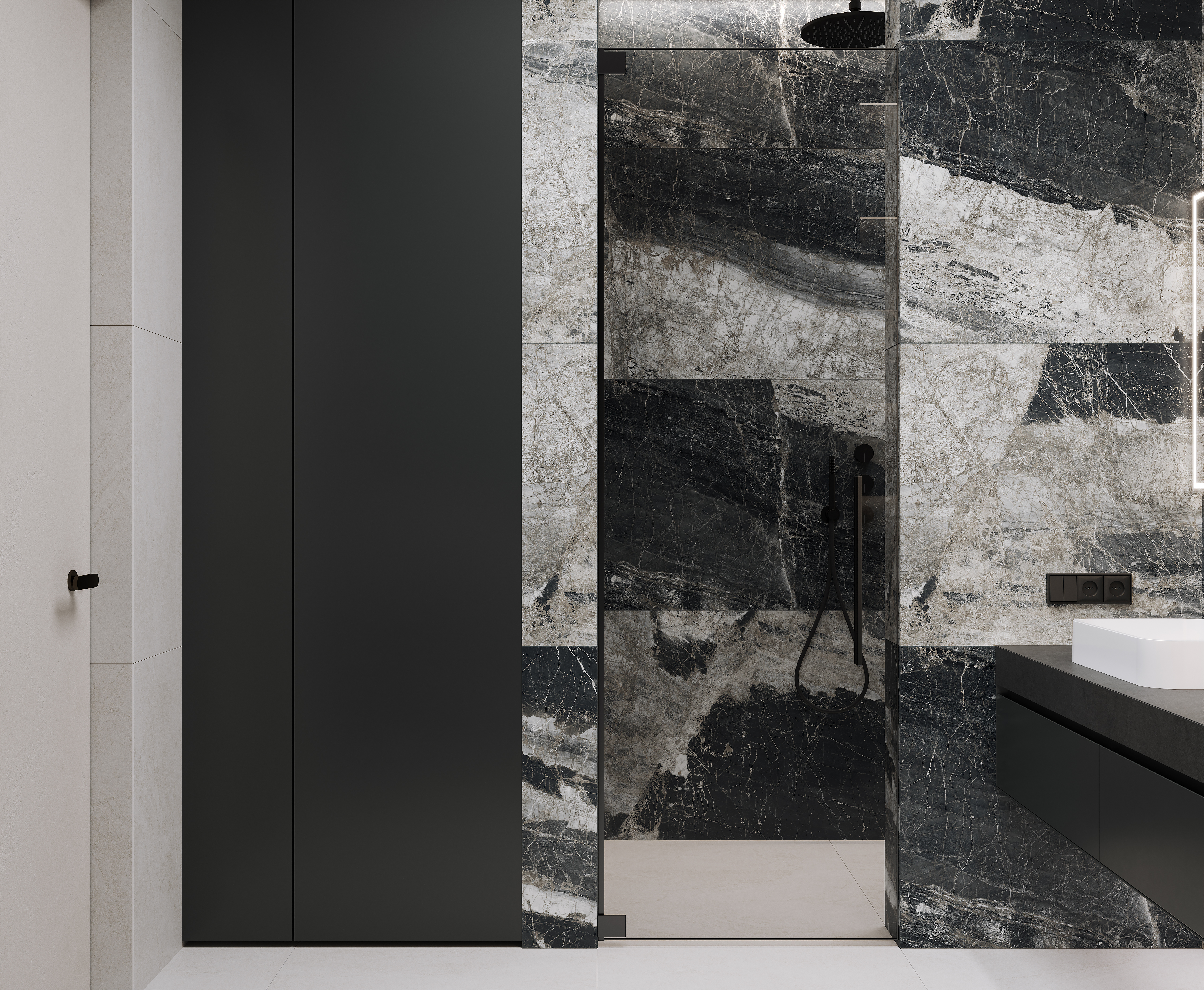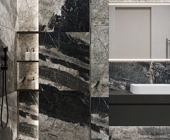 Lunar Nero Керамогранит графитовый 80х160 матовый+гл.чернила
