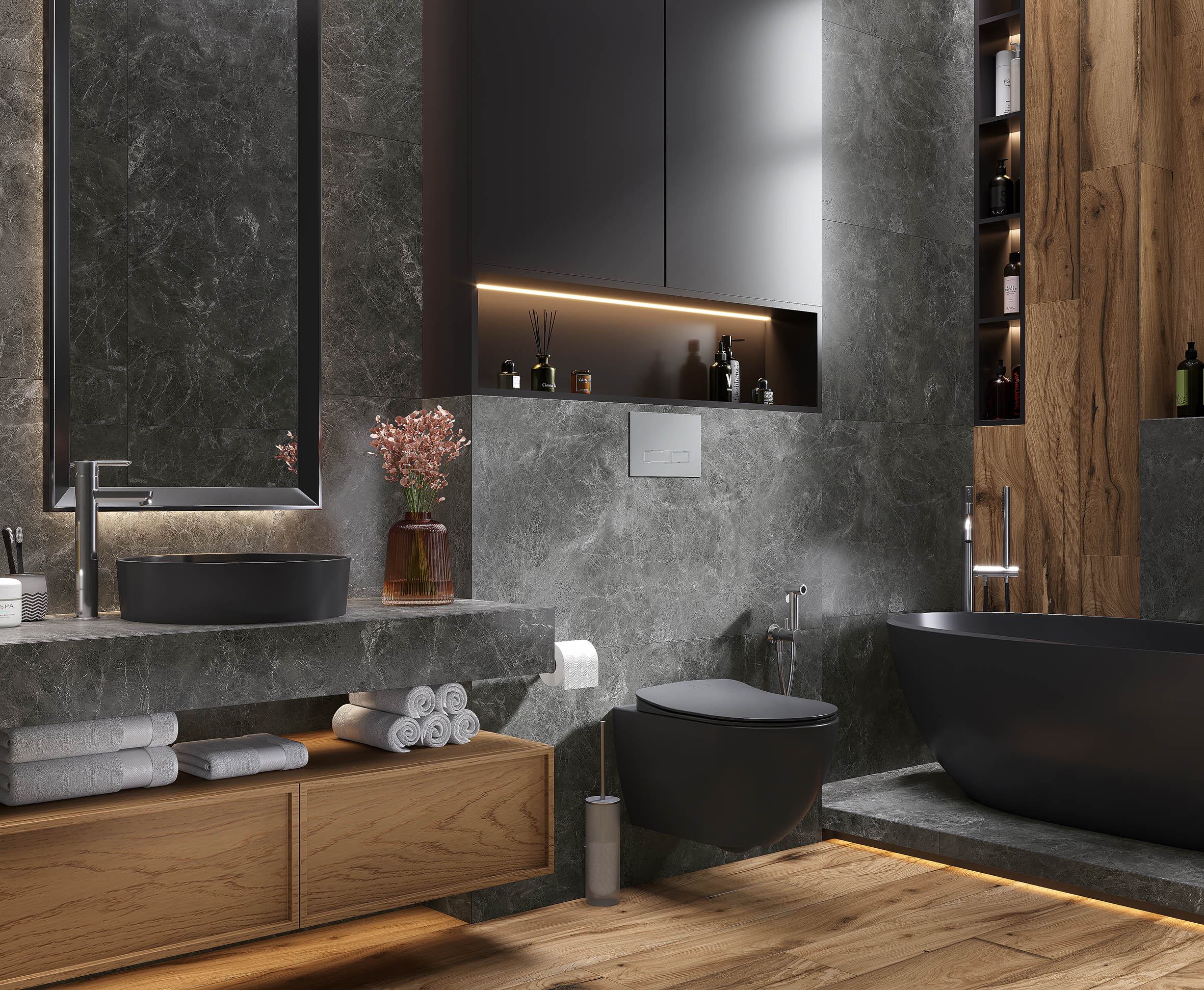 Runa Nero Керамогранит графитовый 60х120 Матовый Структурный